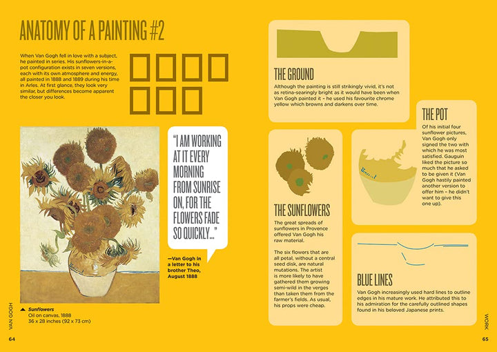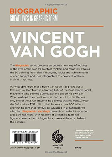 Many people know that Vincent van Gogh (1853–90) was a 19th-century Dutch artist, a leading light of the Post-Impressionist movement who painted Sunflowers and cut off his own ear. What, perhaps, they don't know is that he sold, in his lifetime, only one of the 2,100 artworks he painted; that his work Dr Paul Gachet sold for $152 million; that he wrote over 800 letters; and that he sent that famous ear wrapped in brown paper to a brothel. This book presents an instant impression of his life and work, with an array of irresistible facts and figures converted into infographics to reveal the artist behind the pictures.